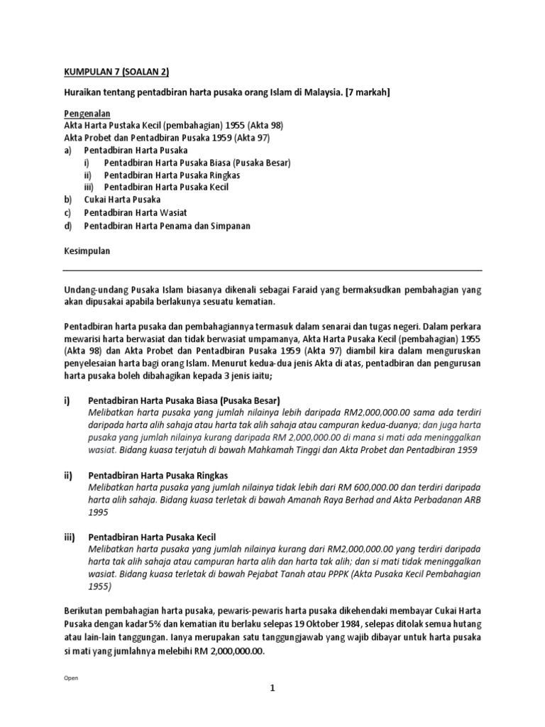 Related : Akta Probet Dan Pentadbiran 1959 : Akta harta pesaka kecil (pembahagian) 1955..