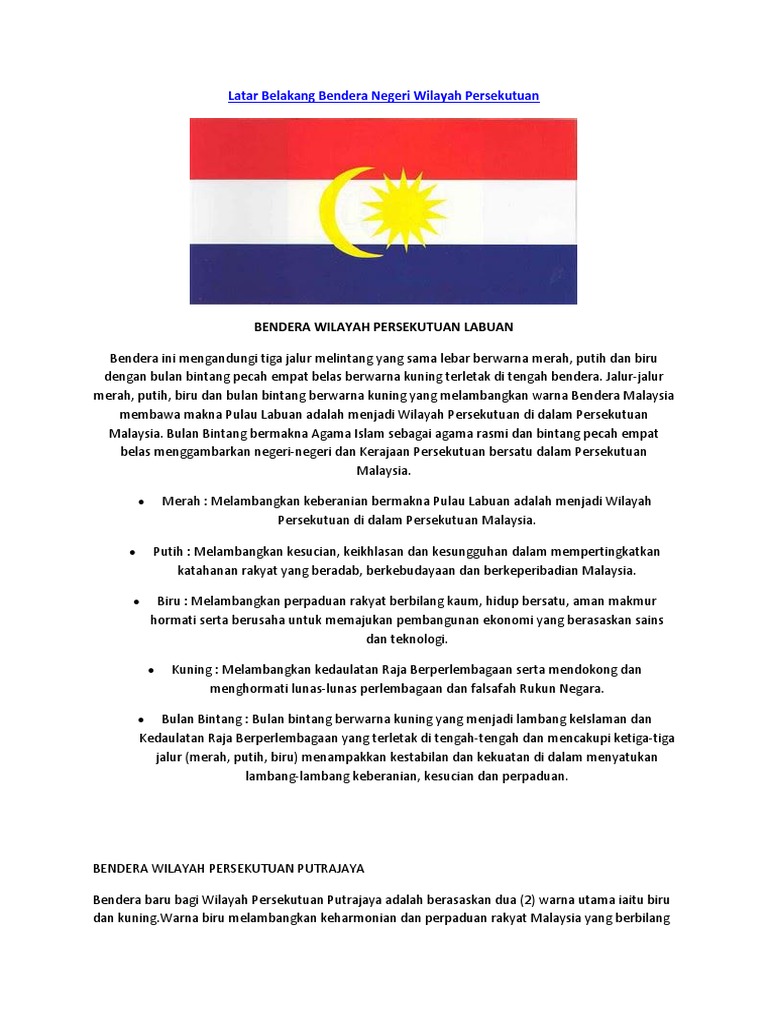 Maju dan sejahtera adalah lagu resmi untuk tiga wilayah persekutuan malaysia, yang terdiri dari kuala lumpur, labuan, dan. Menerapkan warna asas bendera malaysia yang melambangkan wilayah persekutuan adalah milik kerajaan persekutuan dan seluruh rakyat malaysia Bendera persekutuan tanah melayu yang sebelum ini berjumlah 11 jalur melintang berwarna merah dan putih telah bertambah jalurnya kepada 14 jalur sebaik sahaja kemasukan sabah, sarawak dan singapura dalam persekutuan malaysia pada 16 september 1963. Warna biru tua bersama bintang serta bulan sabit berwarna kuning. Wilayah persekutuan kuala lumpur, wilayah persekutuan putrajaya, dan wilayah persekutuan labuan. Malaysia mempunyai tiga buah bendera wilayah persekutuan yang terdiri daripada. Event calendar check out what's happening. Operasi pati bersepadu wilayah persekutuan labuan 11 pati telah ditahan. Bendera ini mengandungi tiga jalur melintang yang sama lebar berwarna merah, putih dan biru dengan bulan bintang pecah empat belas berwarna kuning terletak di tengah bendera. Maju dan sejahtera adalah lagu resmi untuk tiga wilayah persekutuan malaysia, yang terdiri dari kuala lumpur, labuan, dan. Mygov maklumat malaysia bendera malaysia. Bendera wilayah persekutuan persekutuan putrajaya. Labuan terbentuk pada tanggal 16 april 1984.